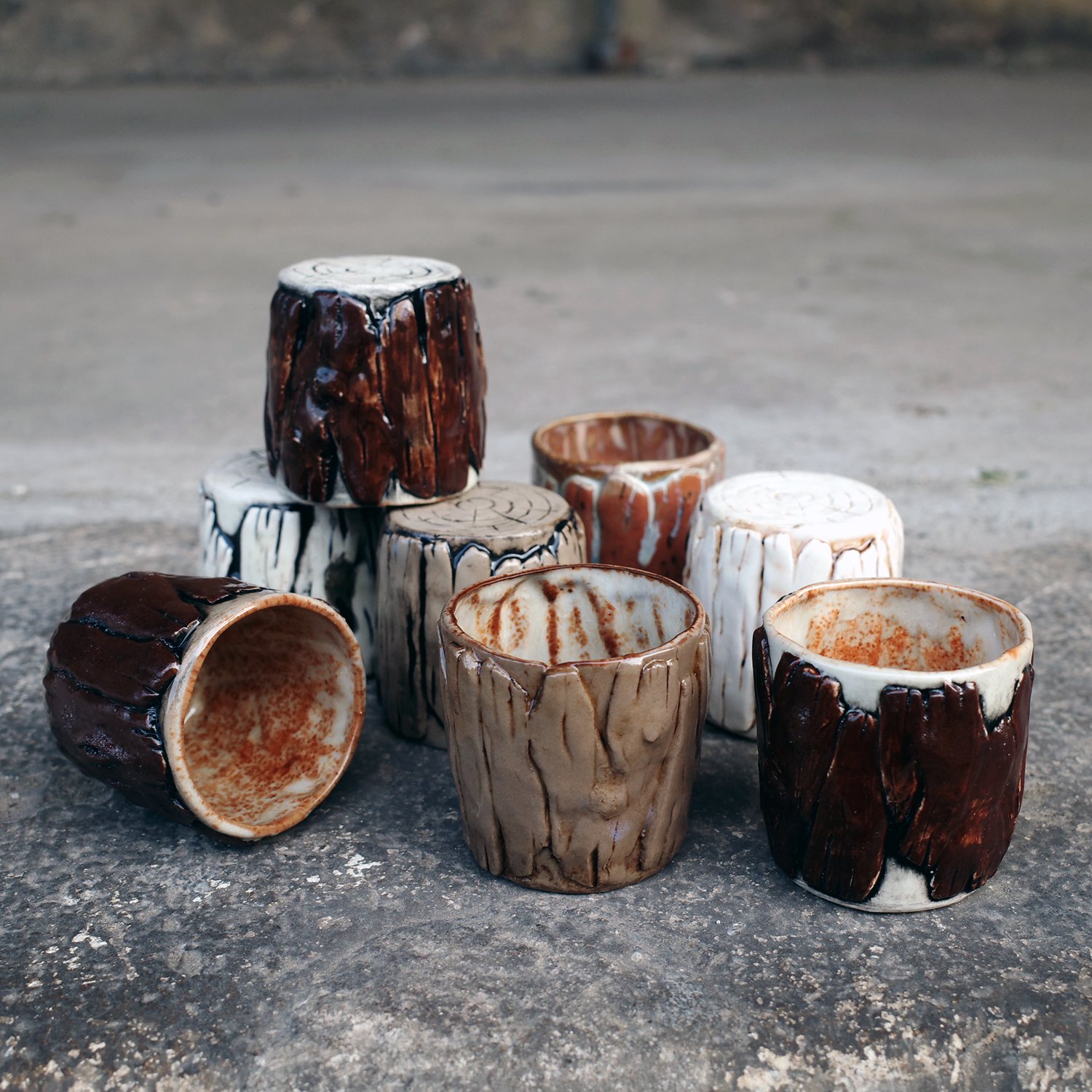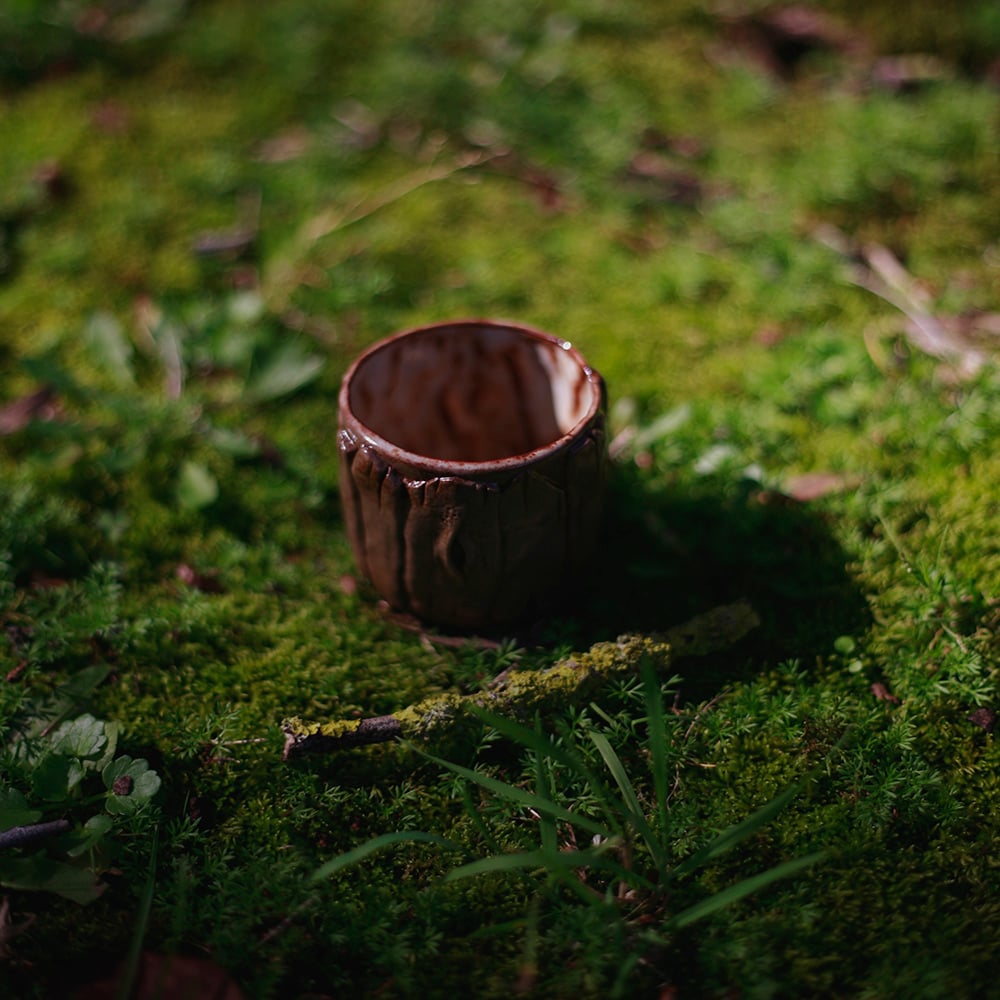 These espresso size cups are part of my Forest collection, inspired by cherished childhood memories of walking through the Masurian forests with my dad. Those explorations—discovering trees, lichens, mushrooms and other intricate wonders of nature—remain a profound influence on my work to this day